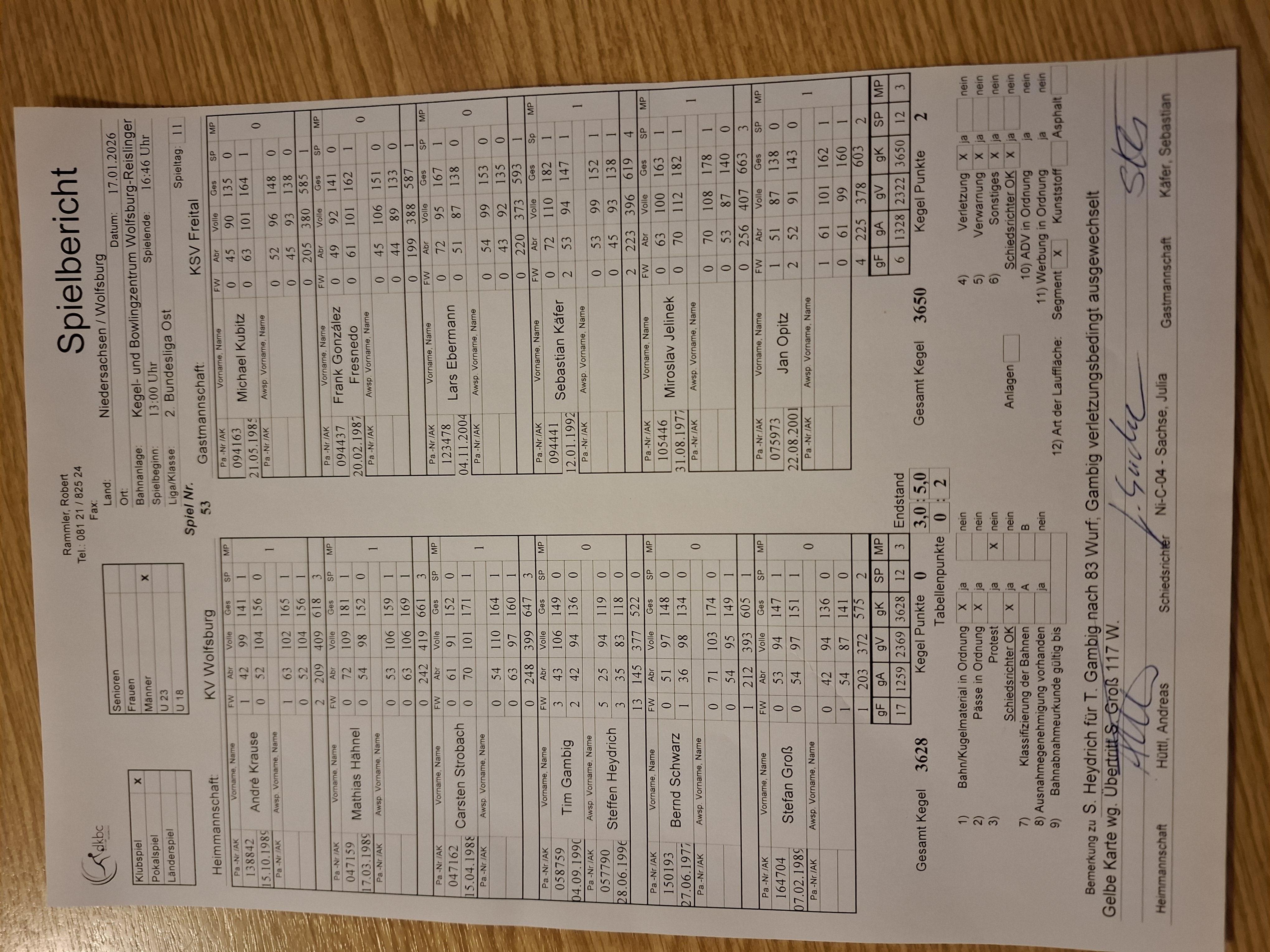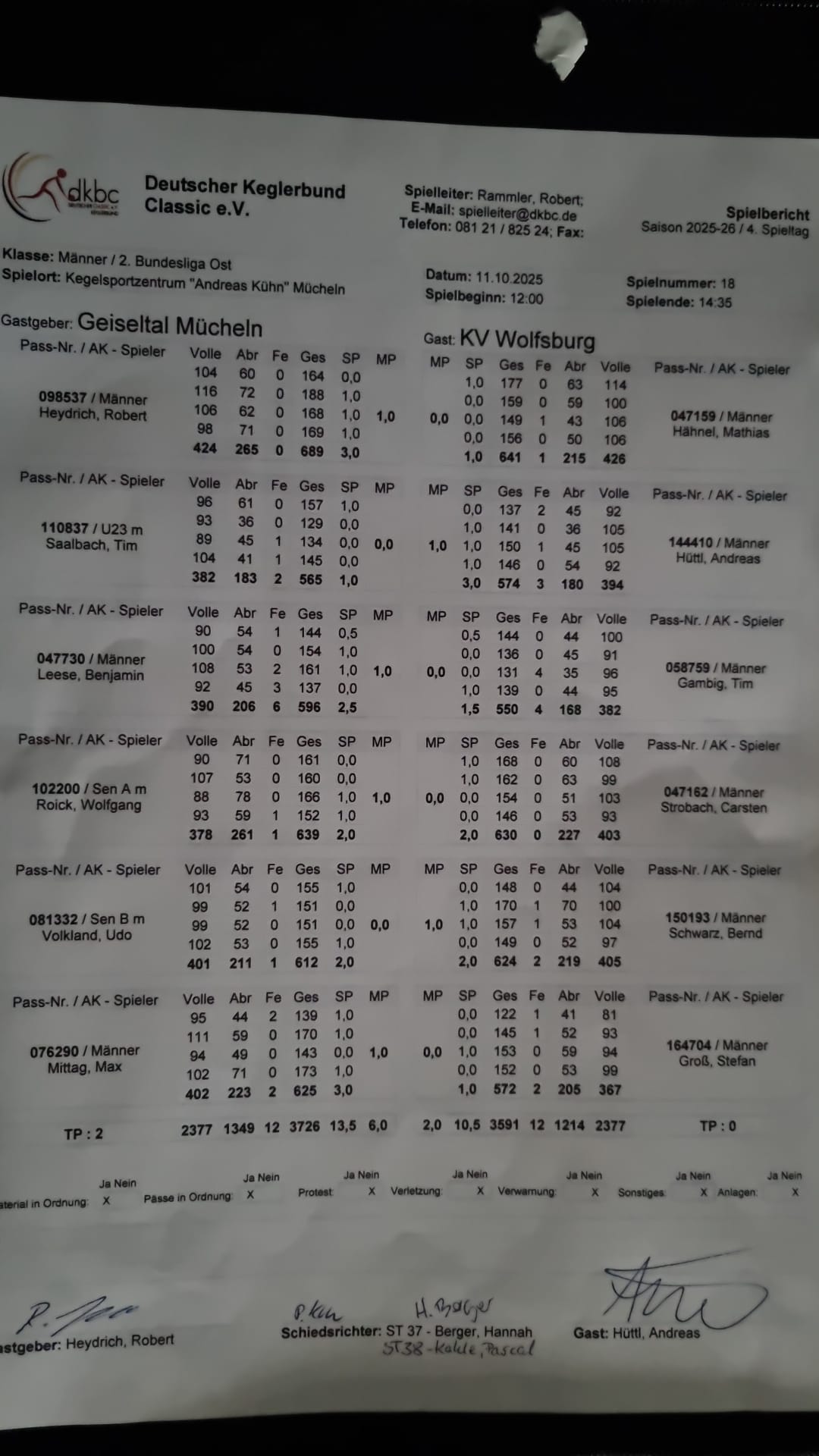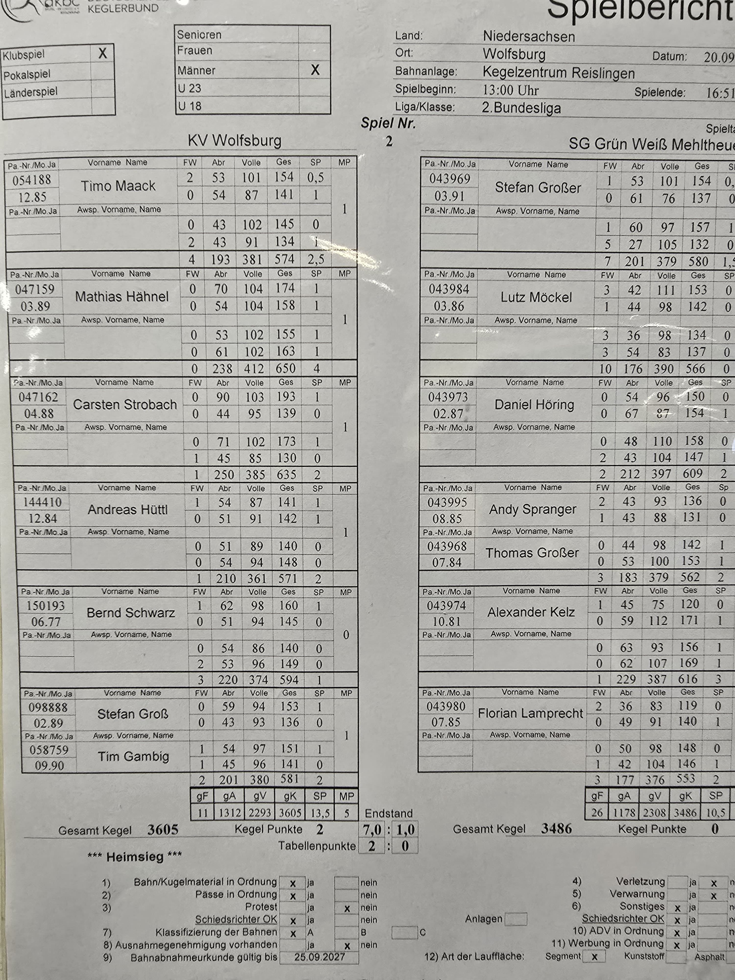 | 25.10.2025 13.00 Uhr | KV Wolfsburg | - | SKV 9Pins Stollberg | 2:6 | S05 | E05 | |
