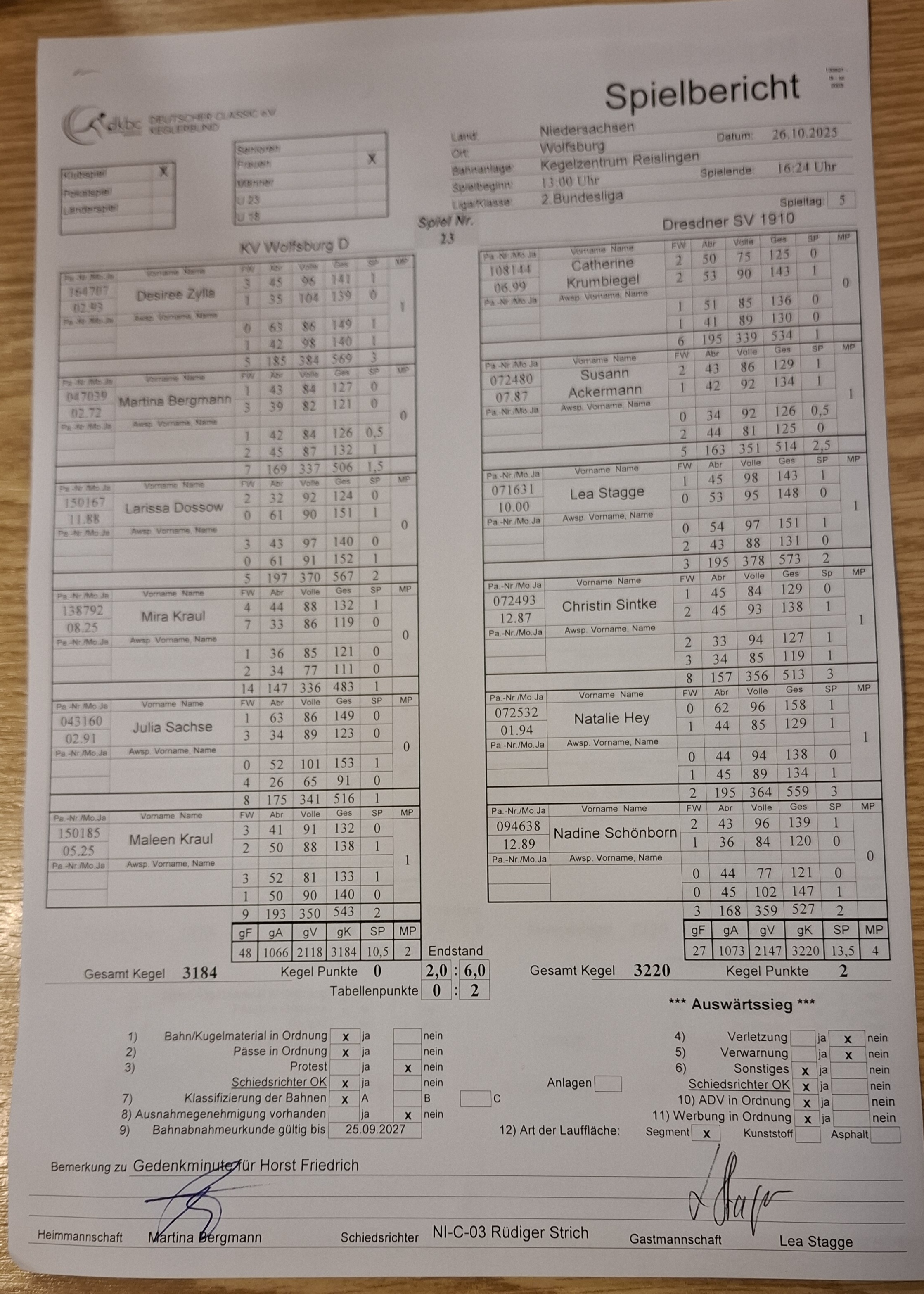 | 26.10.2025 13.00 Uhr | KV Wolfsburg | - | Dresdner SV 1910 | 2:6 | S05 | E05 | |