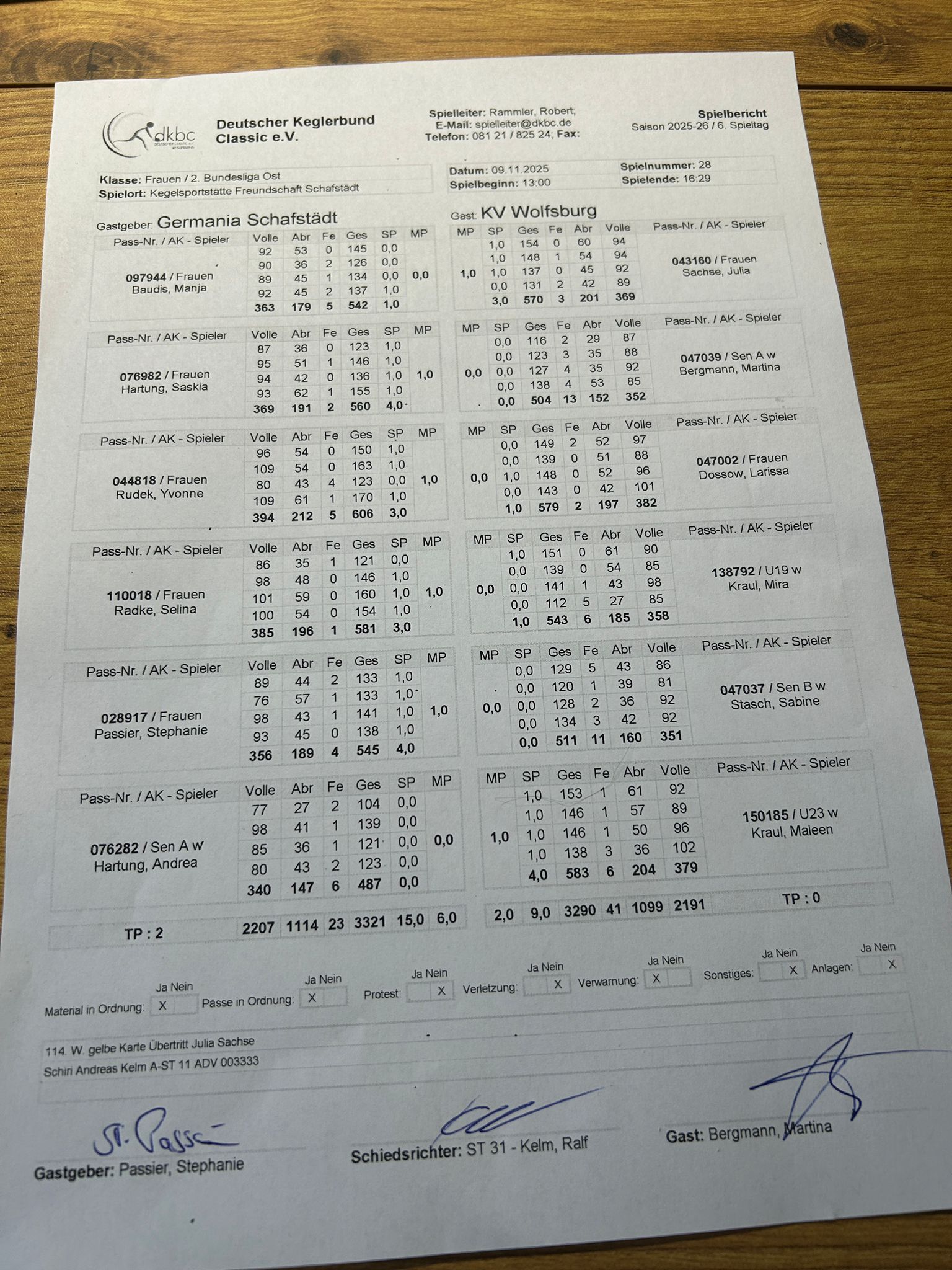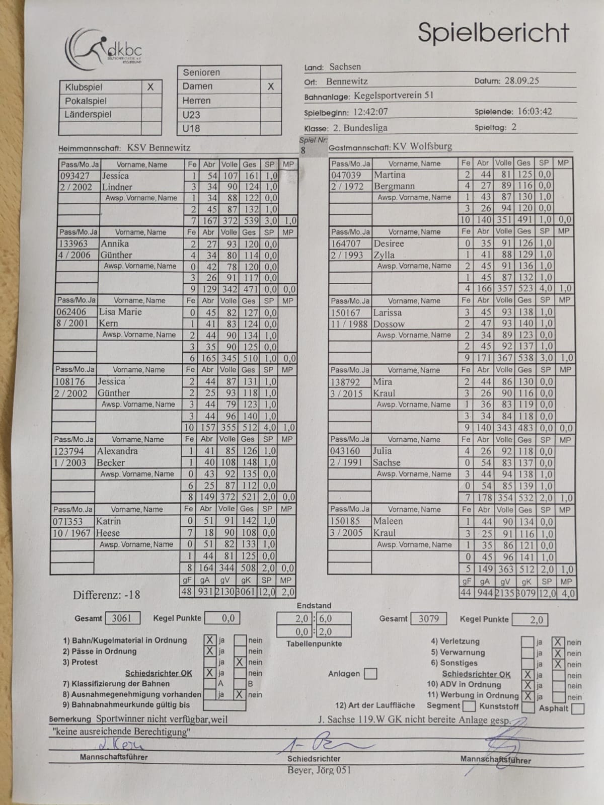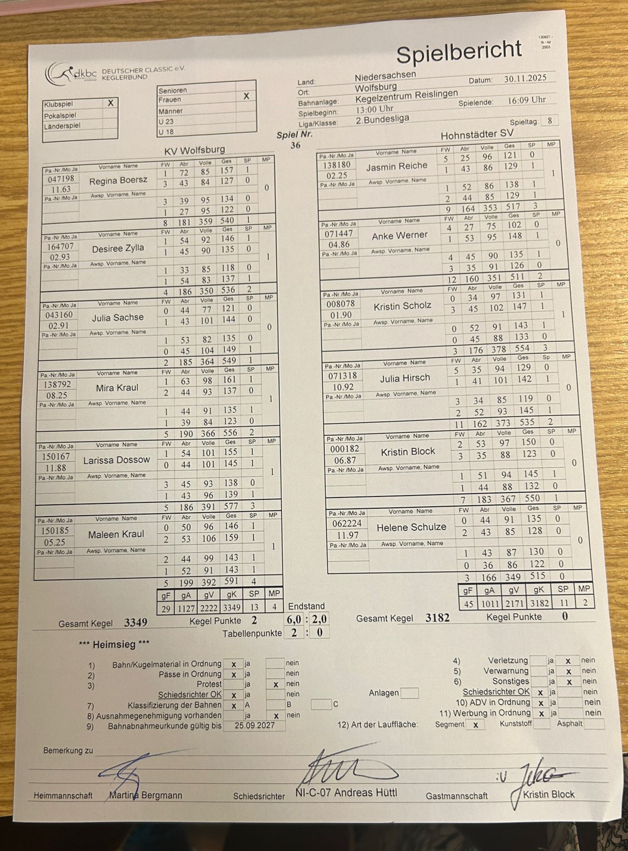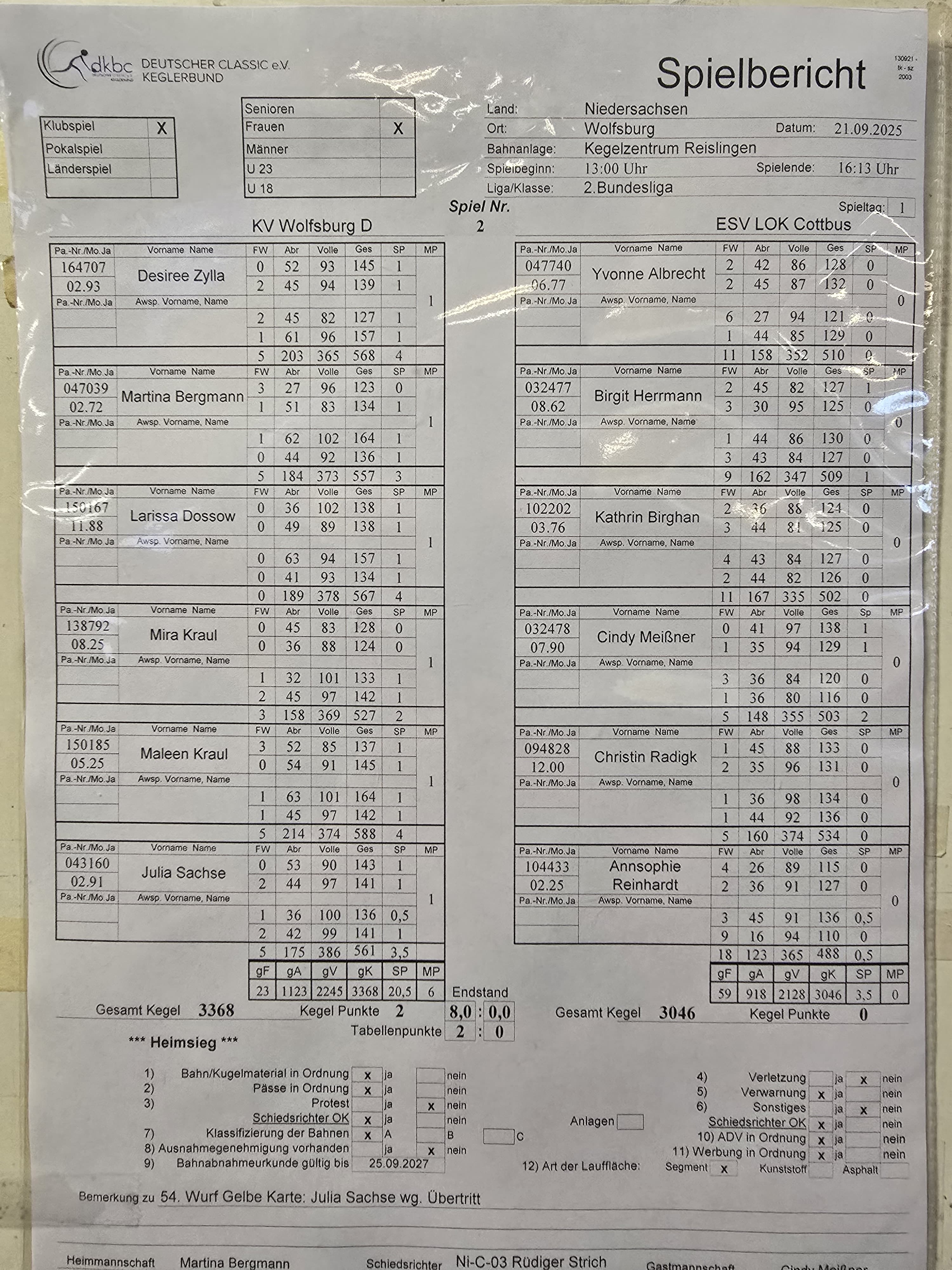 | Ergebnisse | 21.09.2025 13:00 Uhr | KV Wolfsburg | - | ESV Lok Cottbus | 8:0 | S01 | E01 |