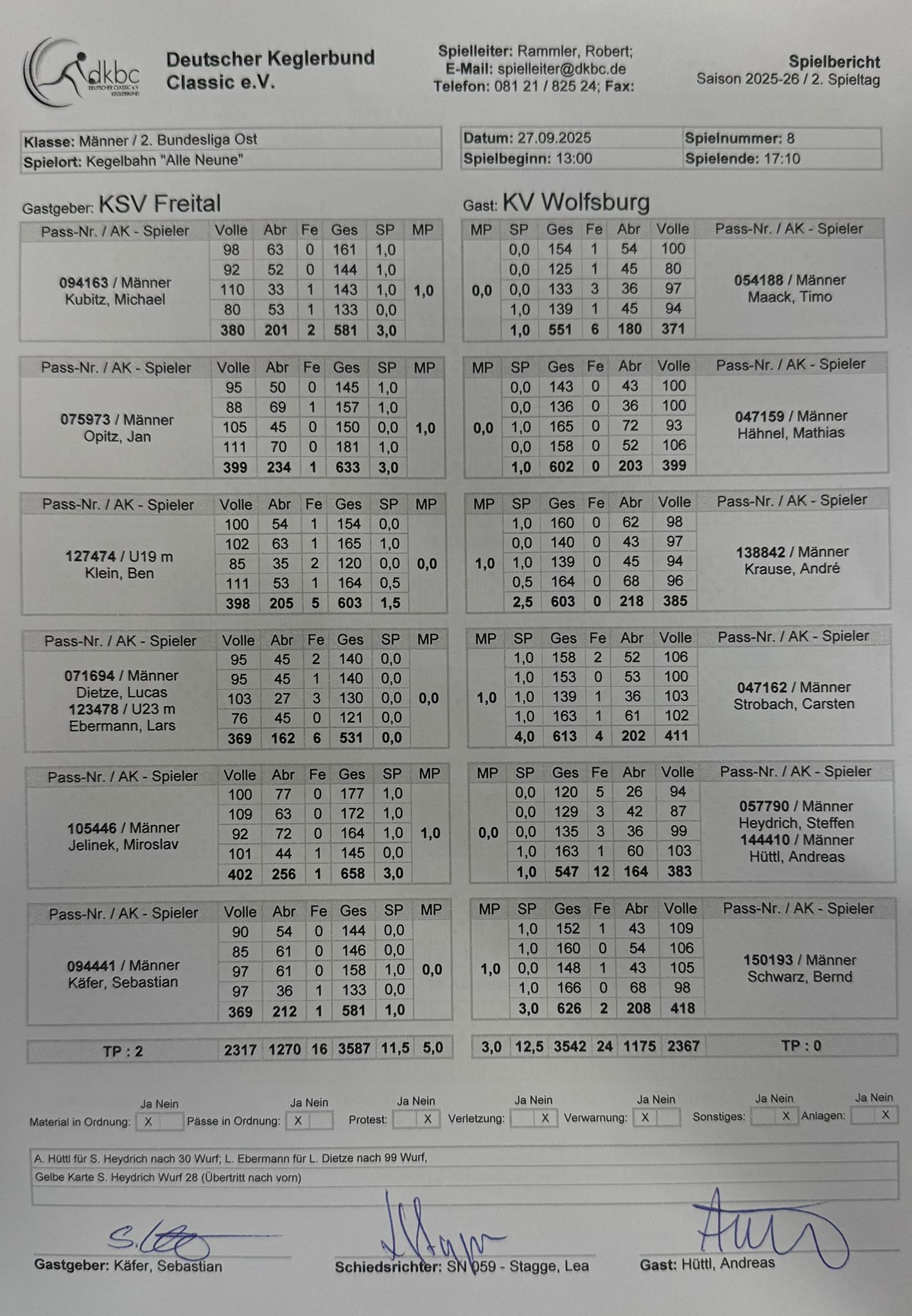 | 27.09.2025 13.30 Uhr | KSV Freital | - | KV Wolfsburg | 5:3 | S02 | E02 | |