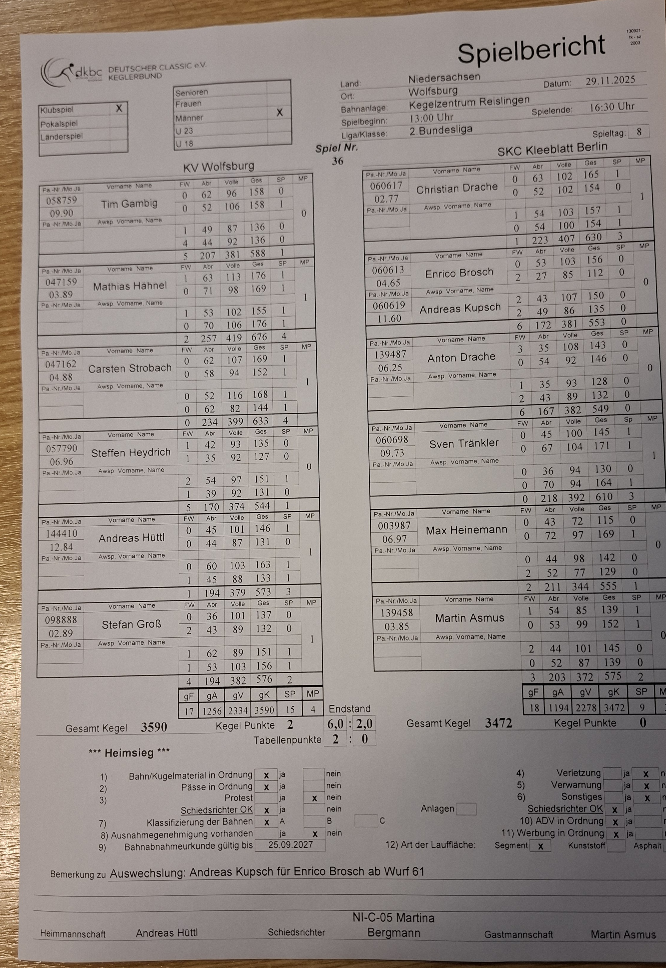 | 29.11.2025 13.00 Uhr | KV Wolfsburg | - | SKV Kleeblatt Berlin | 6:2 | S08 | E08 | |